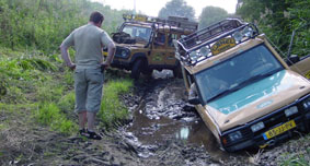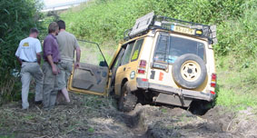 Als echte Camel Trophy Enthusiasts vinden de meesten het leuk om aan de auto’s te sleutelen, maar het wil weleens gebeuren dat het sleutelen wat langer duurt en van rijden komt er dan niet veel. En als iemand naar zijn mening te lang aan het sleutelen is geweest begint het bloedte kriebelen en moet en zal er gereden worden. |