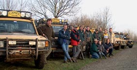 Onderweg trokken we veel bekijks. Het gebeurt natuurlijk niet elke dag dat er een aantal Camel Trophy auto;s voorbij komen. Veel vaders met hun kinderen keken ons dan ook verbaasd en bewonderend na. Voor velen is de Camel Trophy nog steeds een droom. Bij aankomst stond de koffie al klaar, even gezellig babbelen, maar vol verwachting klopt ons hart. En bij het zien van het terrein begon bij menigeen de vingers te tintelen en de rechtervoet te trillen. |