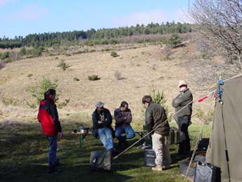 | Bijna duizend kilometer van huis worden de auto’s geparkeerd, de tenten opgezet, materiaal uitgepakt en gecontroleerd, en voor de meesten is een welverdiend pilsje aanwezig. | |||