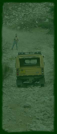 Mark, heeft in zijn auto zowel voor als achter een camerasteun gemaakt om zodoende tijdens het rijden te kunnen filmen. Er wordt gefilmd vanuit de auto. Regelmatig is ie met zijn camera ook op andere plekken. Bijvoorbeeld op het dak van zijn auto terwijl Maikel dan behoedzaam de lastige paden probeert te nemen. Enkele blauwe plekken bij Mark zouden ons niet verbazen. Overigens bestaat de kans dat als iemand niet oplet Mark achter op de bumper springt en probeert tijdens het rijden over het dak heen te filmen. Gelukkig heeft hij al zijn tanden nog. En uiteraard is iedereen nieuwsgierig hoe de uiteindelijke videoband gaat worden. Hij schijnt zo’n 8 of 9 uur te hebben opgenomen. Regelmatig werd de camera ook in andere handen geduwd als Mark zijn aanwezigheid en aandacht ergens anders werden vereist. Gedurende alle dagen speelt ook humor een grote rol naast de steeds terugkerende verbazing als we zien wat deze auto’s allemaal kunnen | ![]() |