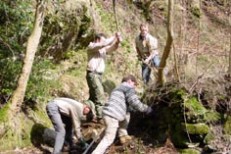 Elke dag brengt zo nieuwe uitdagingen. Nieuwe paden worden gevonden. Rotsblokken verplaatst, bomen die paden blokkeren worden verwijderd. De zaag wordt berekend gehanteerd. Een pad vrijmaken is niet hetzelfde als onnodig vernielingen aanrichten. De beheerders van dit terrein zijn zelfs tevreden over de arbeid die we met z’n allen verrichten. |