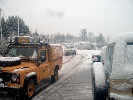 Uiteindelijk is Mark degene die Wim weet over te halen met het argument dat dit iets is waar je gewoon even doorheen moet. En hij heeft gelijk. Als Jaap heelhuids beneden komt en zijn triomfkreten door de ether schallen stemt Wim toe. De achterkant van zijn auto wordt met een lier gezekerd en met Jaap als bijrijder en steun hobbelt ie met kloppend hart toch naar beneden. Onderwijl goed oplettend op de aanwijzingen van Axel. De aanwijzingen van zowel Axel als Mark zullen ook de komende dagen veel opgevolgd worden. |