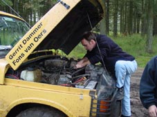 | De Hi-cap is een auto met een eigen wil lijkt het wel. Deze hoeft niet vast gereden te worden. Na tweemaal door het waterige modderspoor te zijn gereden stopt deze vanzelf bij de derde poging. Is er dan sprake van vastrijden of opgeven? Wonderlijk genoeg - als de auto maar 5 minuten op droge grond staat doet ie het weer alsof er niks aan de hand is.Vreemd toch? | ![]() |