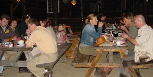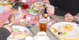 | Zo gezegd, zo gedaan. En dan, uiteindelijk toch, zo’n kleine 10 uur na het vertrek zijn we weer terug bij In Den Bockerijder. Daar kan gekozen worden voor koffie, thee, bier of ander drinken en natuurlijk zijn de diverse uitsmijters erg welkom. In een gezellige omgeving en een goede sfeer wordt de dag zoetjesaan afgesloten. | ![]() |